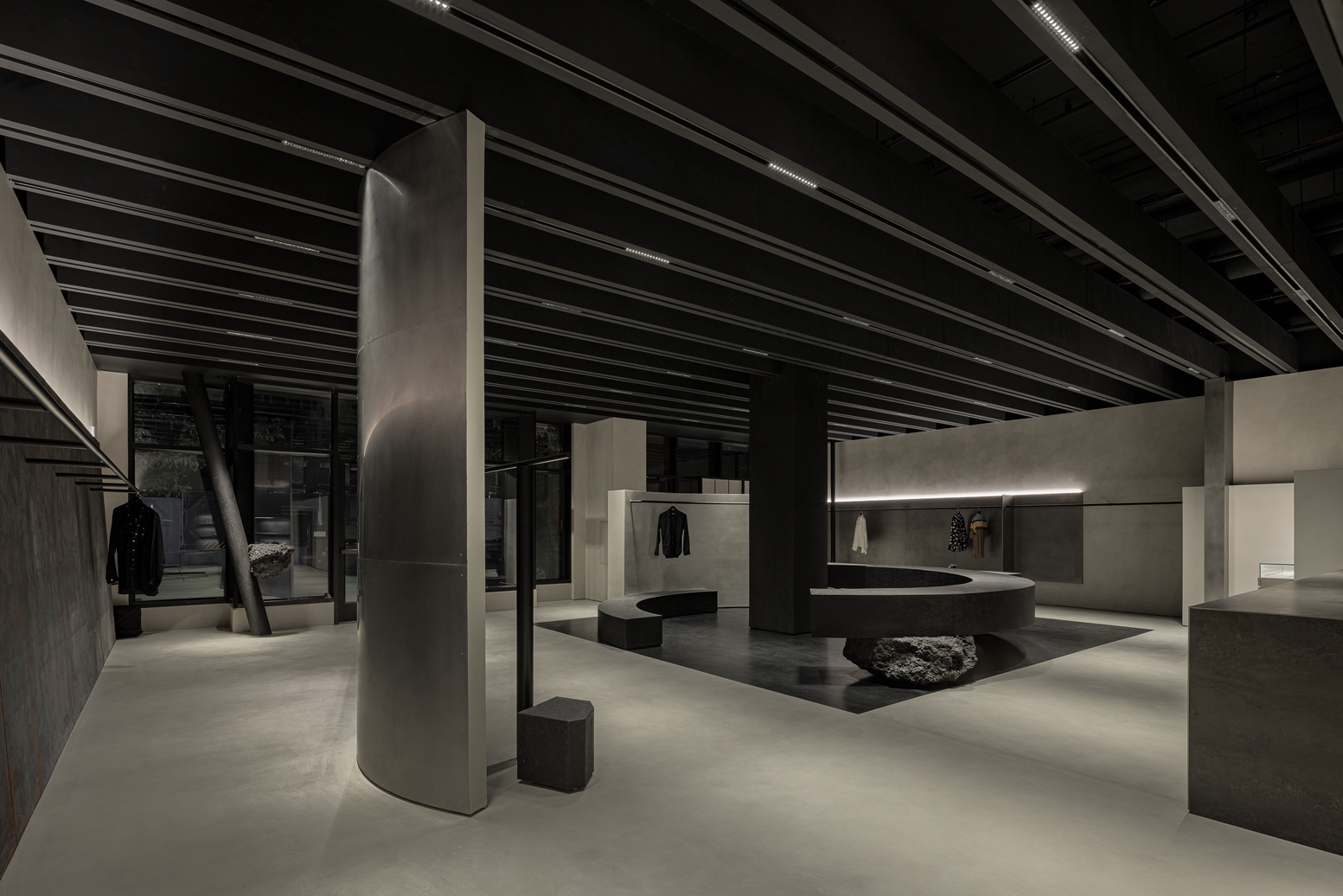 "By embodying the Eastern philosophy, SVRN's lens would speak of collections that are not just the product of fashion and trends, but beyond garments," said Jonghwan Baek, creative director of WGNB. David Kim, CEO of SVRN, agrees with Baek's philosophy, stating, "WGNB was able to execute my family's story of perseverance through an artistic lens, where the buildout of our store not only elevates the Chicago retail environment, but portrays a strong message."
