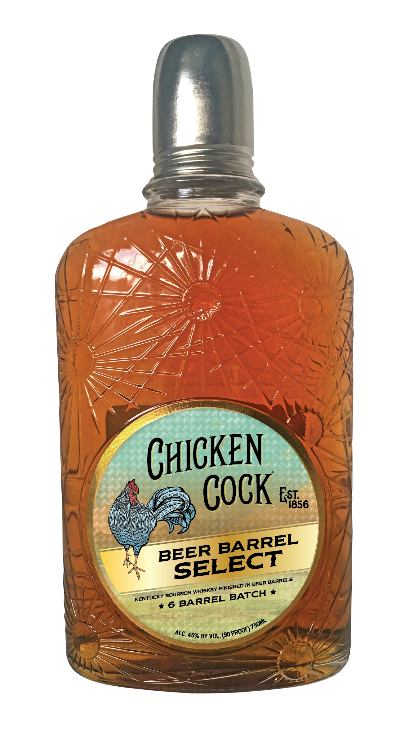 Beer Barrel Select is full-bodied, with initial notes of butterscotch, caramel, and vanilla, followed by a hint of toasted oak, and then a sweet finish with nut and chocolate flavors. Never chill-filtered, Beer Barrel Select retains the flavors and slight haze of the Walnut Brown Ale. Chicken Cock’s unique, Prohibition-era bottle and “sipping glass” lid complete the heritage bourbon experience.