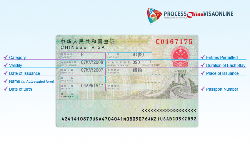 There are 6 different kinds of visas that can be processed by ProcessChinaVisaOnline.com - Chinese Visa L, Chinese Visa X, Chinese Visa F, Chinese Visa Z, Chinese Visa C and Chinese Visa G.