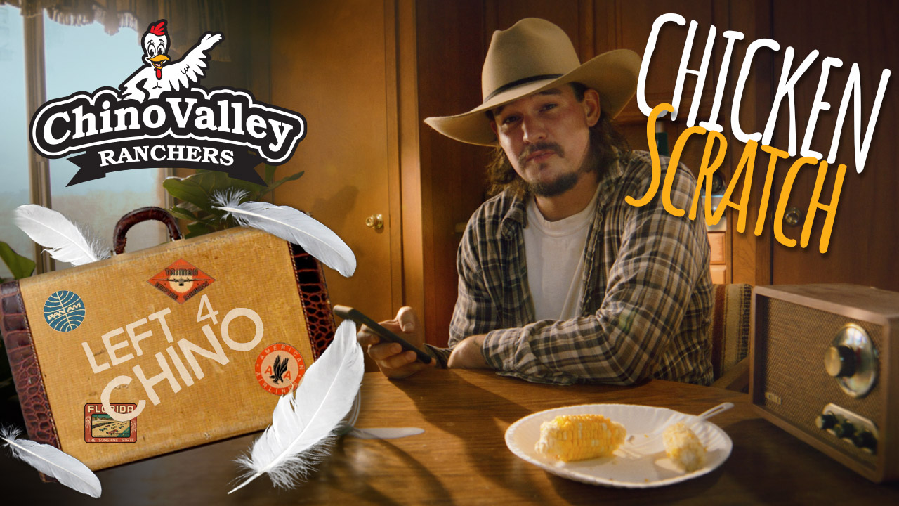 The winning ad, titled Chicken Scratch, is presented in a music-video format and features a lovelorn rancher jilted by his favorite chicken who has flown the coop for Chino Valley. A string of puns delivered in convincing country heartbreak style culminate in the tagline, "The Grass Is Greener at Chino Valley." (View the ad here.)