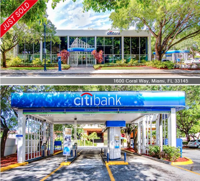 The portfolio consisted of a 3,725 SF branch located at 1600 Coral Way Miami, FL and is situated on a full block parcel with dual hard corners. The sales price was $3,073,100. The second property in the portfolio is a 3,230 SF branch located at 84 Crandon Boulevard Key Biscayne, FL - an irreplaceable location, which connects to downtown Miami via the Rickenbacker Causeway. The sales price was $3,230,000.