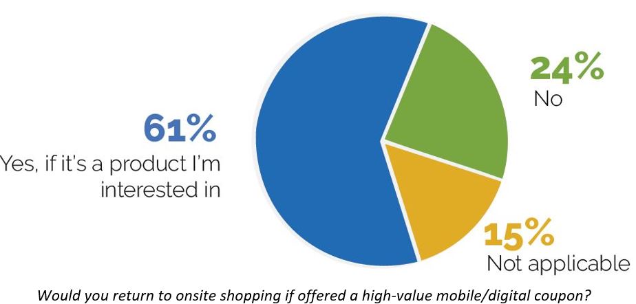 But three-quarters (75%) of respondents indicated that they would shop more often at their favorite stores if they received mobile/digital coupons.