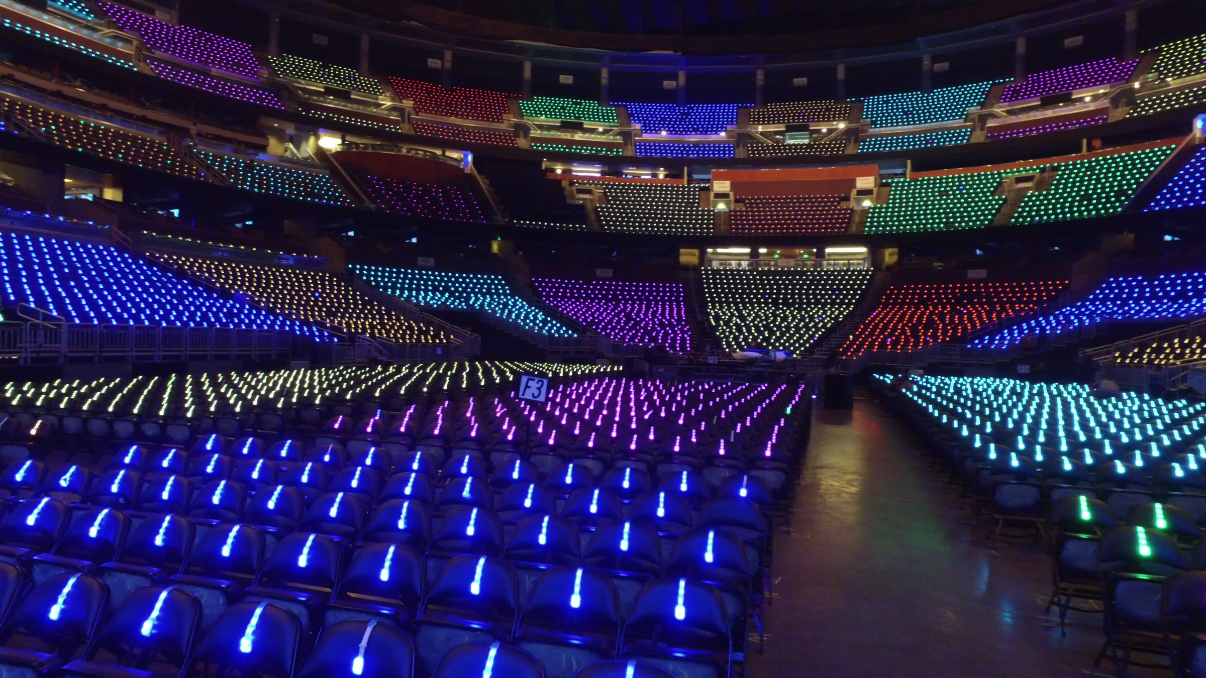 The LED light show on everyone's wrists come from the LED wristbands made famous by Coldplay on the Mylo Zyloto tour; only this time all kinds of new technology were added. The Xylobands worn at the Hard Rock stadium made a bright, immersive display of 500,000 LED, or more, filling the stadium with brilliant light in sync with the music.