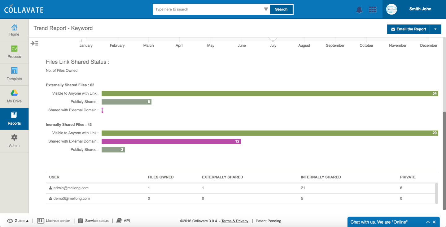 The three main features of the Collavate Google Drive DLP include: real-time activity report; real-time detection and prevention; and Google Drive Usage trends and analysis.