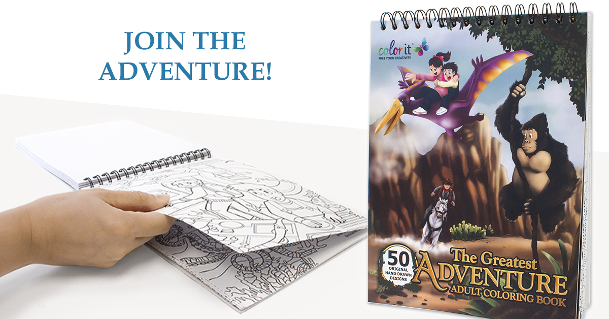 Escondido, CA, April 14, 2016 (Newswire.com) - Unless you live under a rock, you know adult coloring books are the latest trend sweeping the nation. According to Amazon, 5 adult coloring books ranked in the top 20 on their Best Sellers of 2015 list. Recently, ColorIt launched their newest book, The Greatest Adventure, on Kickstarter.com. After only one day, their campaign received 20% of its funding.