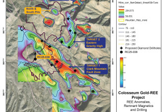 The Colosseum is located less than 10km north of the Mountain Pass Rare Earth mine. Planning has commenced on drill testing the REE potential at Colosseum.