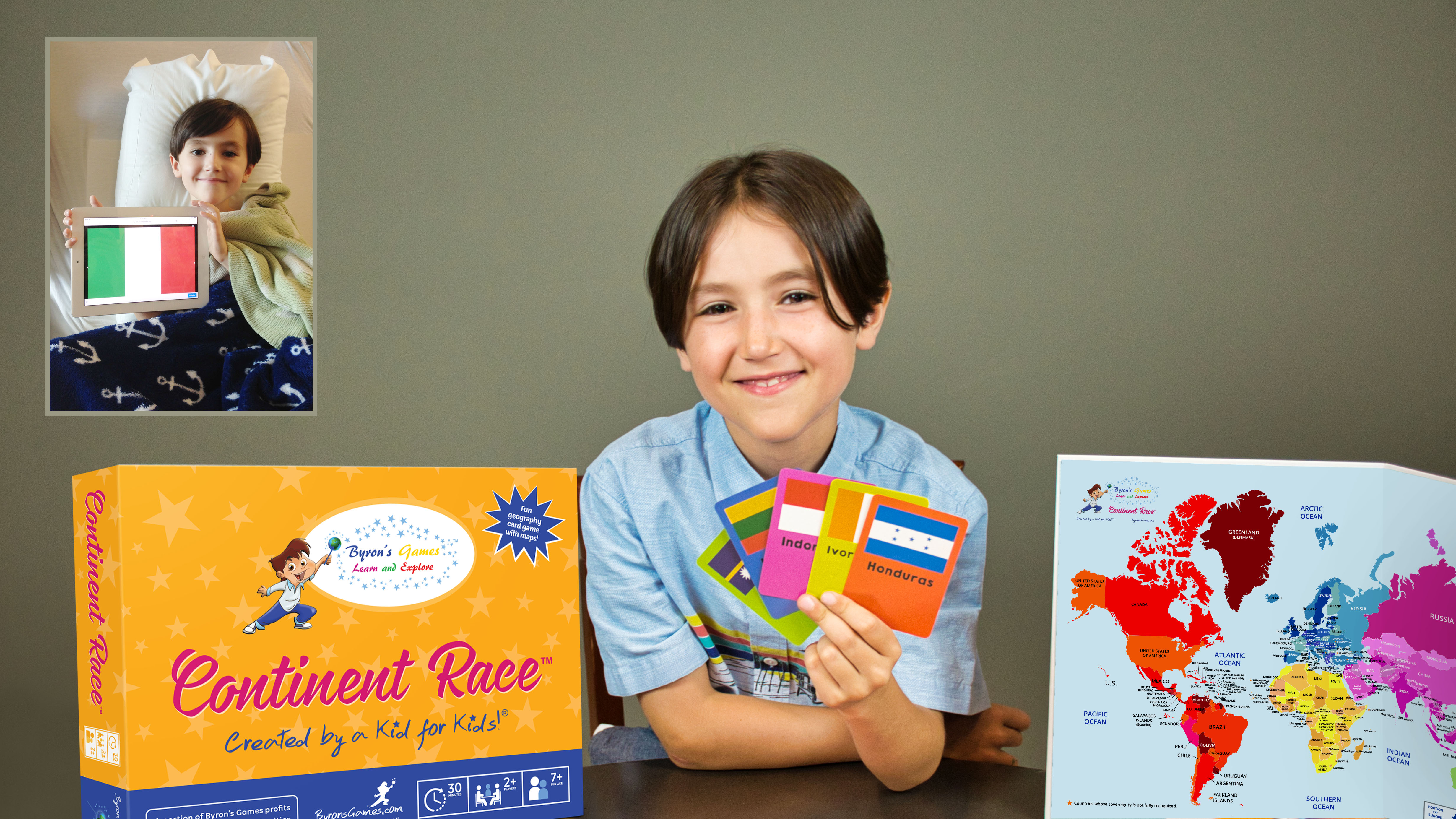 CHICAGO, December 20, 2018 (Newswire.com) - Little Byron had a month-long stay at Ann & Robert H. Lurie Children's Hospital in Chicago, Illinois when he was just six years old. As a way to pass the time, Byron channeled his passion for geography and created a fun game to share with other children. Continent Race is an exciting and interactive board game that helps children learn the continents, countries, and flags of the world and keeps players of all ages engaged.