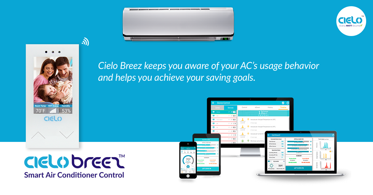 Cielo Breez and its eco system is designed to maximize user’s convenience and achievements of targeted energy savings goals. Features include but not limited to power of unlimited controls from anywhere, comprehensive usage statistics, complete usage audit of connected ACs & Heat Pumps, weekly scheduling, location-based controls, air filter status and much more. Users can save up to 25% on their energy bills by using Cielo’s futuristic feature set and energy saving algorithms.