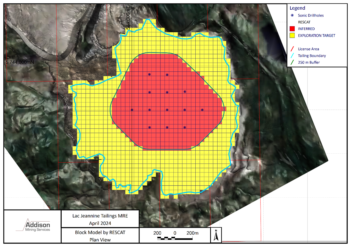 It is anticipated that the rejects from the reprocessing of the tailings will be pumped back into the former Lac Jeannine mine open pit so that the natural topography can, as much as possible, be returned to its natural state.