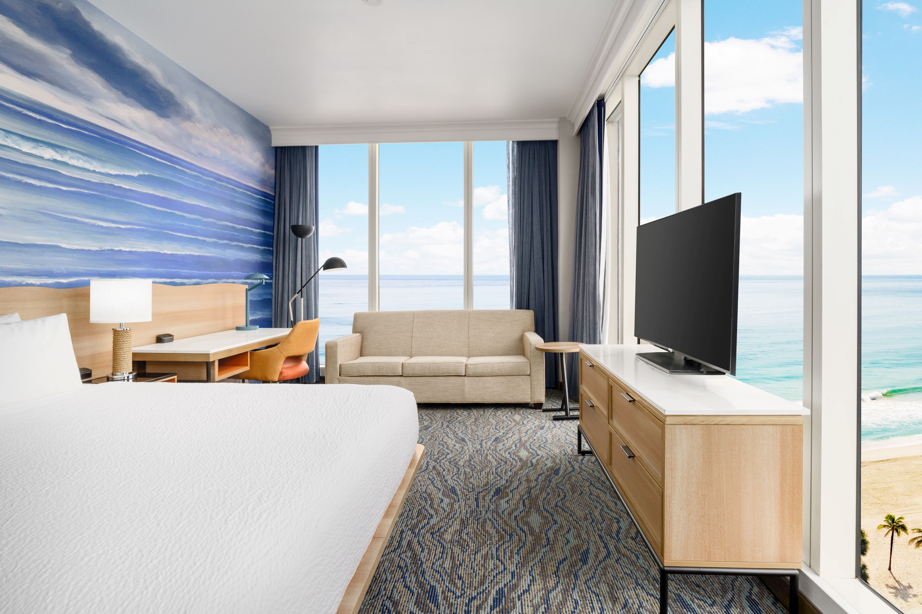 Modern Coastal Guestrooms: Every guestroom has been redesigned with sleek aesthetics and comfort in mind. Floor-to-ceiling windows reveal spectacular views of either Fort Lauderdale Beach or the Intracoastal Waterway, paired with cutting-edge amenities designed to enhance the stay of leisure and business travelers alike.
