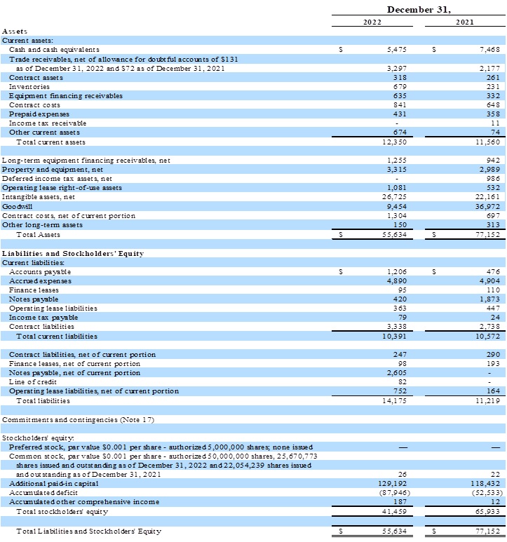 Total cash and cash equivalents at December 31, 2022 of $5.5 million compared to $7.5 million at December 31, 2021.