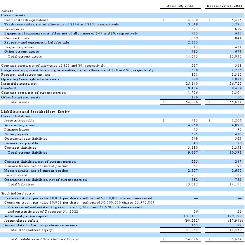 EBITDA for the second quarter of 2023 of $383 compared to a loss of $(232) for the second quarter of 2022. Adjusted EBITDA for the second quarter of 2023 of $1,238 compared to $626 for the second quarter of 2022.