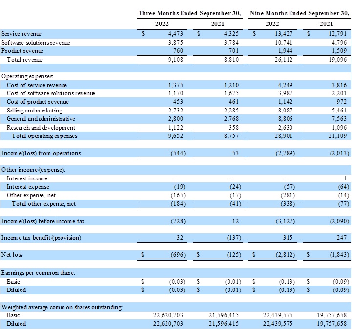 Consolidated software solutions revenue for the third quarter of 2022 increased 2% to $3.9 million compared to $3.8 million for the third quarter of 2021.