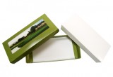 Set up boxes are made by specialized machines that wrap paper, or even foil stamped, around a chipboard tray. The interior of the set up box can be lined with something as simple as paper or as intricate as silk liner over custom shaped foam. When it comes to set up box design, the sky is the limit!