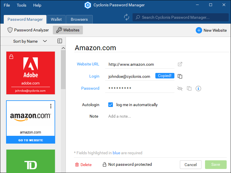 Cyclonis Password Manager Encrypts, Stores & Organizes Data