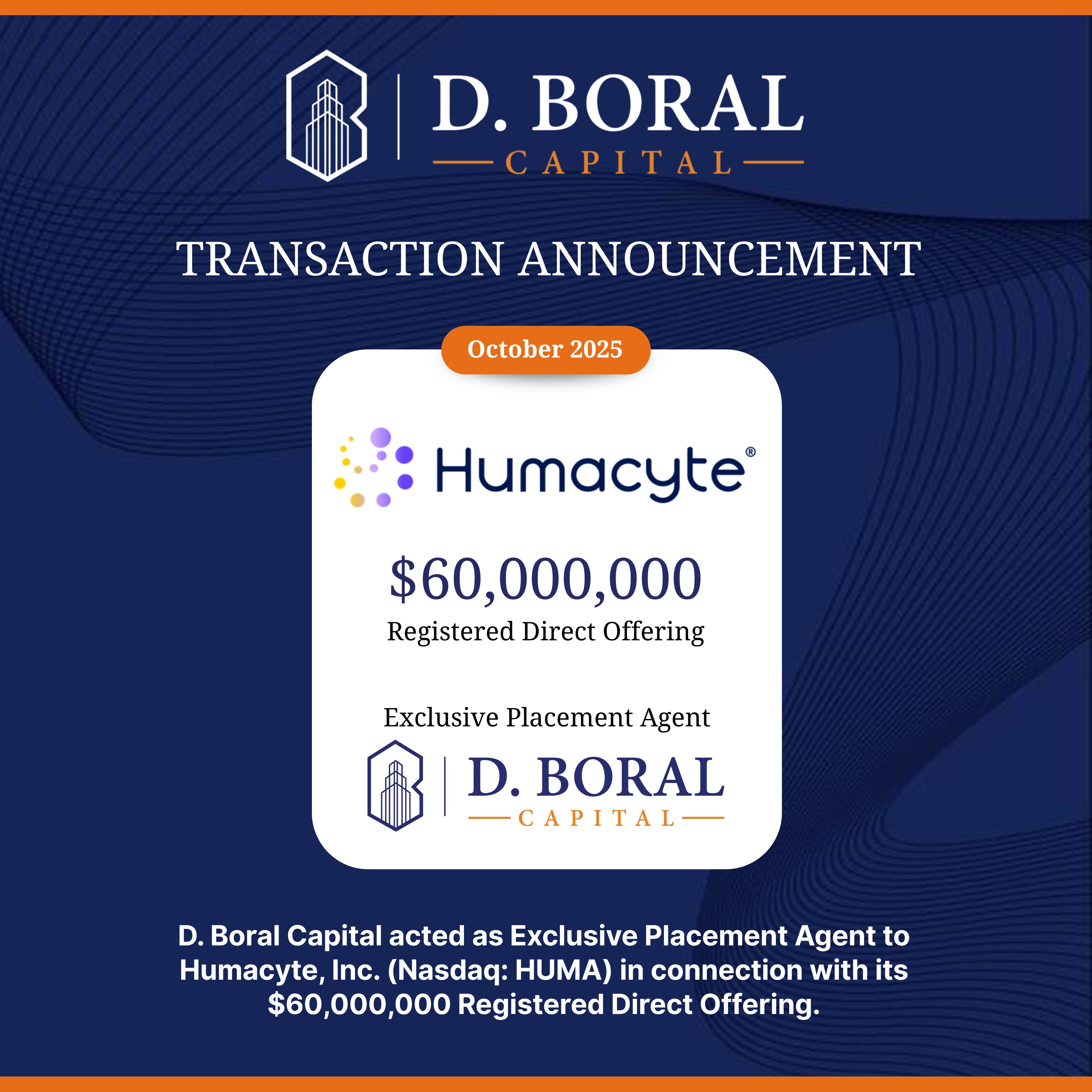D. Boral Capital Acted as Exclusive Placement Agent to Humacyte (Nasdaq: HUMA) in Connection with its $60,000,000 Registered Direct Offering