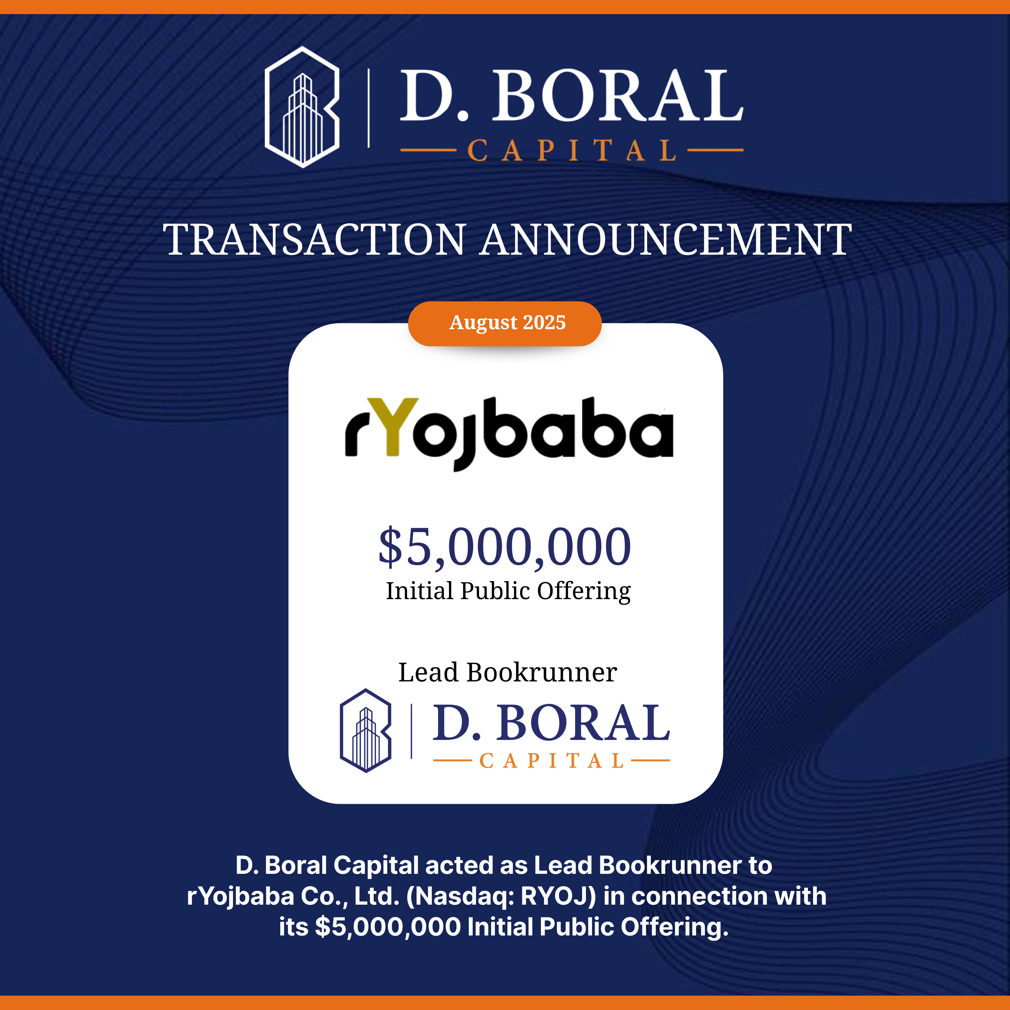 D. Boral Capital Acted as Lead Bookrunner to rYojbaba Co., Ltd (Nasdaq: RYOJ) in Connection with its $5,000,000 Initial Public Offering