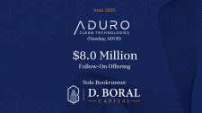 D. Boral Capital Acted as Sole Bookrunner to Aduro Clean Technologies (Nasdaq: ADUR) in connection with its $8.0 Million Follow-On Offering