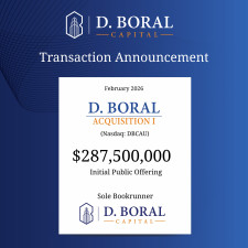 D. Boral Capital Acted as Sole Bookrunner to D. Boral Acquisition I Corp. (Nasdaq:DBCAU) in Connection with its $287,500,000 Initial Public Offering
