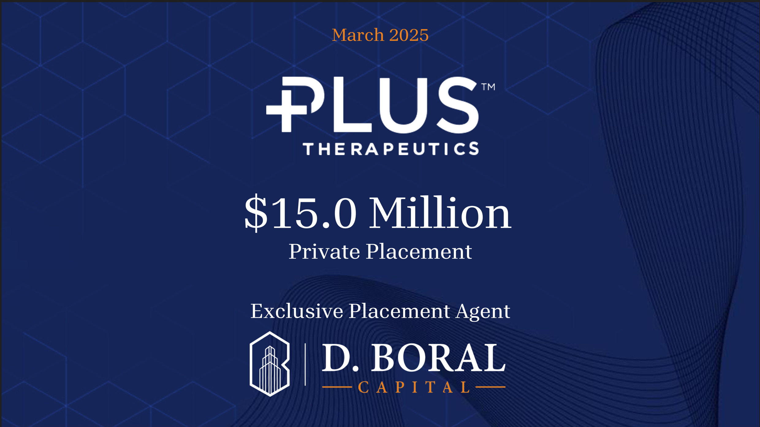 D. Boral Capital Served as Exclusive Placement Agent to Plus Therapeutics, Inc. (Nasdaq:PSTV) in Connection with its up to $15.0 Million Private Placement