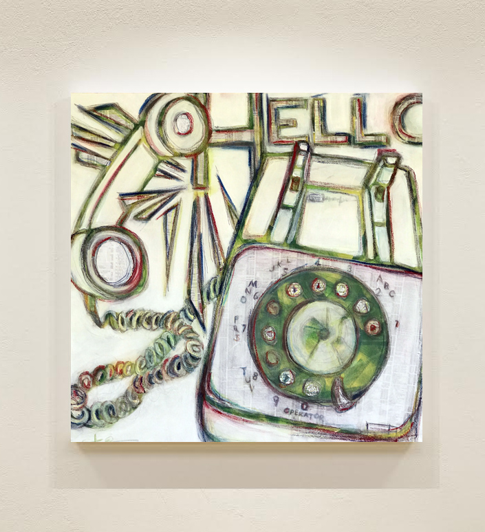 The rapid pace of technological advancement is astounding. Each new version of the phone/computer in my pocket renders old technology obsolete. This series is a collection of everyday household items from the past, once essential, now absent. My paintings are densely layered with acrylic, collage and pastel. However, the finished pieces evoke quick sketches from memory, slightly skewed by the haze of nostalgia.