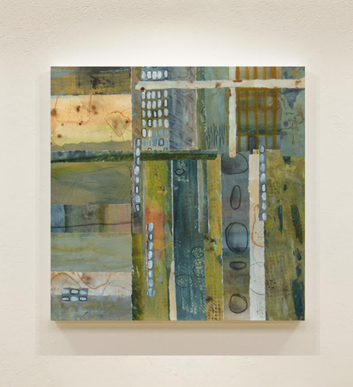 "A tree, the earth, the atmosphere, life, a good story...they all have layers. My Strata series are layers of paint, mark making and collage on papers. Stripes from those larger sheets and other found papers form layers to tell stories. These stories express my fondness for the natural world with all its complexities."