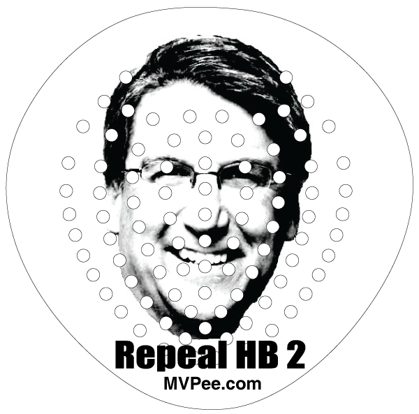 The company manufactures (made in the USA) printed urinal screens under the URL and name of (no joke) MVPee.com for the millions of urinals located in stadiums, office buildings and restaurants across America. While MVPee.com’s urinal screens with images of political candidates and rival sports teams always sell well, urinal screens with pro and con HB2 bathroom messages have been keeping this Dallas based company busy, ever since the bill was signed into law. One (con HB2) version has an image of North Carolina Governor Pat McCrory with the words, "Repeal HB2." The other (pro HB2) has a "box" to check with the words "Check Box in Yellow if you want Obama to get out of your bathroom." While a majority of these urinal screens are selling into North Carolina, MVPee.com reports that these urinal screens have sold briskly from New York to Georgia to California.
