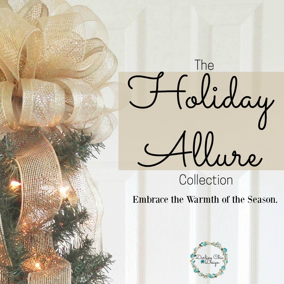 The inviting line will include exclusive designer pieces created with burlap, metallics and plaids; and also includes Darling Chic Design’s best-selling holiday item, The Country Christmas Set. This dazzling array of bows includes one large tree topper bow, along with 12 matching smaller tree ornament bows created with gorgeous gold trimmed tartan plaid ribbon. This set, as with others in the collection, can have multi-functional uses in the home as tree toppers, mantel decorations, gift bows, and more! Other pieces in the Holiday Allure Collection include: