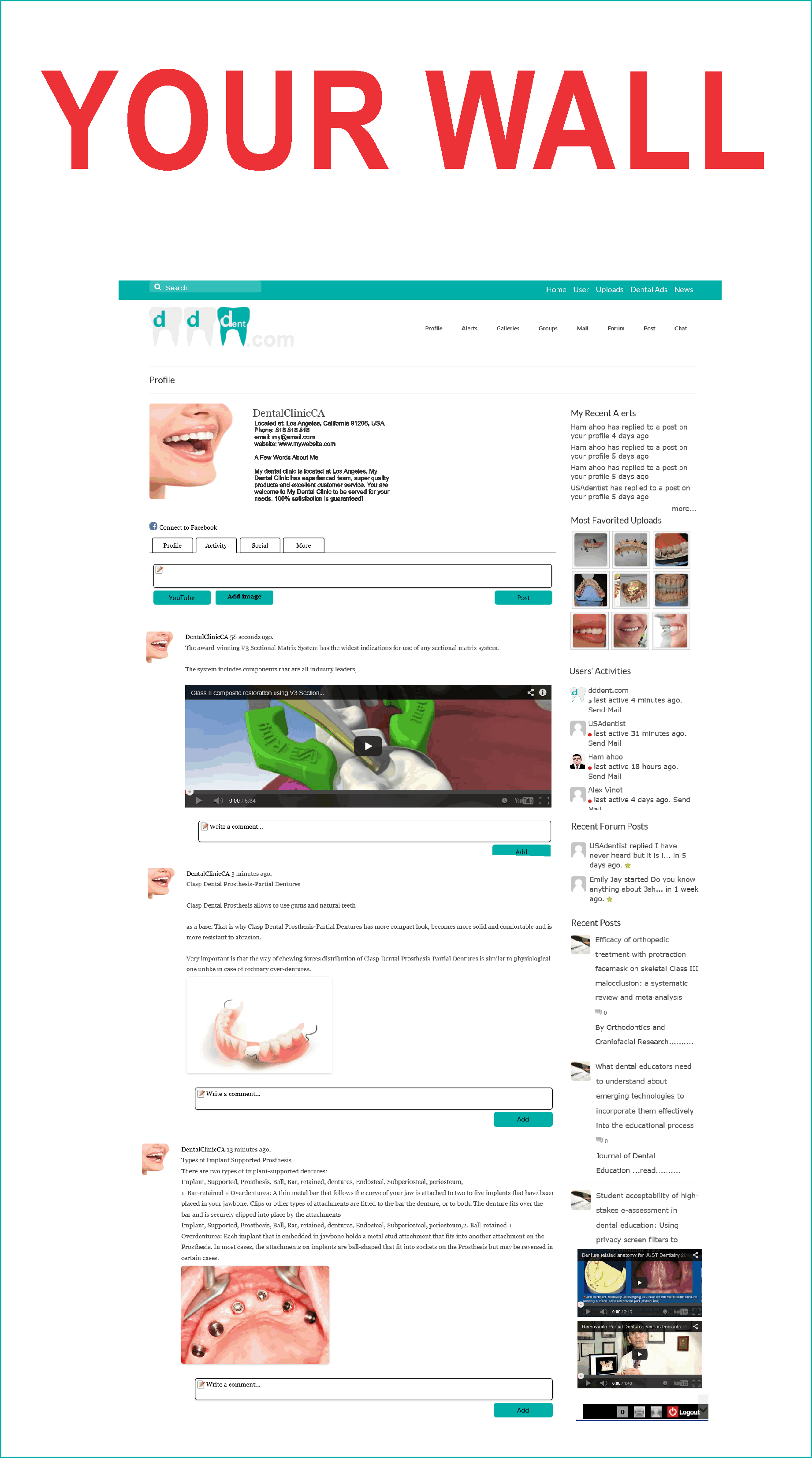 - Users can create a social profile at Profile and connect their DDDent.COM account with their Facebook profile and do synchronized postings.