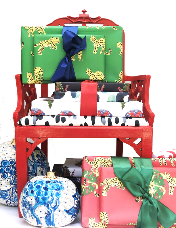 The wrapping papers are designed to elevate your gift-giving and thrill recipients. With the popularity of Chinoiserie in home decor today, Design Pretty thought it would be the perfect motif to incorporate into a line of fall and holiday decorations, as well as gift wrapping and stationery. This holiday collection is not the typical fall pumpkins, and traditional reds and greens one would expect. The hand-painted Chinoiserie pumpkins are done in a whimsical blue and white Asian motif. The collection also includes non-traditional animal prints and feminine floral patterns.
