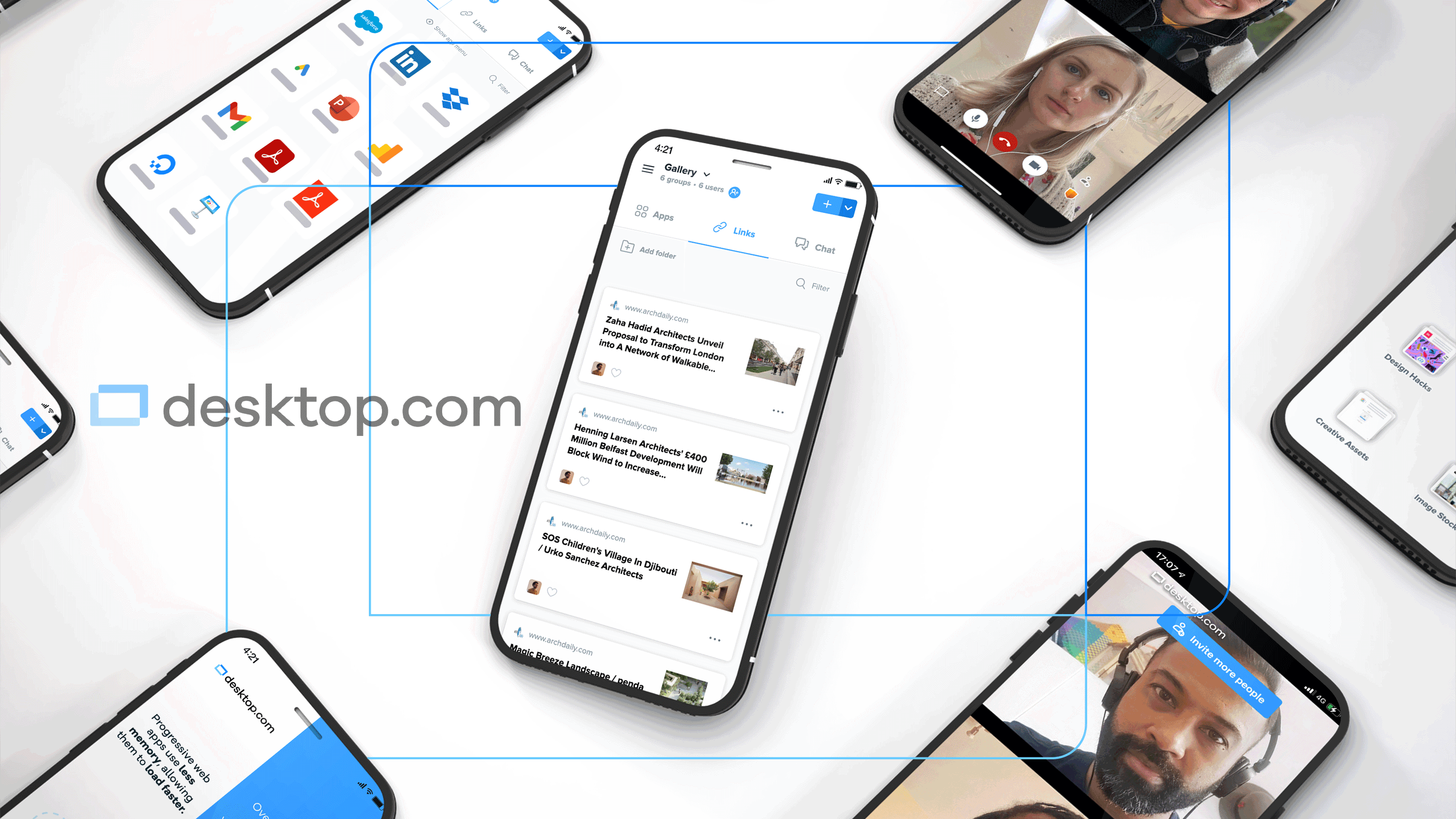 Desktop.com amplifies momentum for the way teams work today. Cloud-based with every app, link bookmark and business communication intuitively organized — the service is securely compatible with any device.