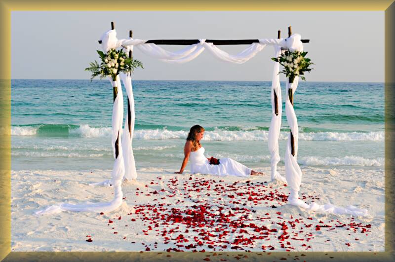 How about a sunset Sugar Beach Weddings location seaside in Destin? The soft, golden lighting of a sunset offers wonderful photographic opportunities. You won't be squinting in any bright sunshine. As the wedding ceremony takes place, the magic of the sunset will enhance the beauty of your new bond and life together. What better combination could you possibly dream of? All the perfect conditions will be present, including the ocean breeze, sand, water, sunset, shadows, and your emotions. It will be an intoxicating mix for all of your senses. There are so many enticing possibilities when considering Florida beach weddings.
