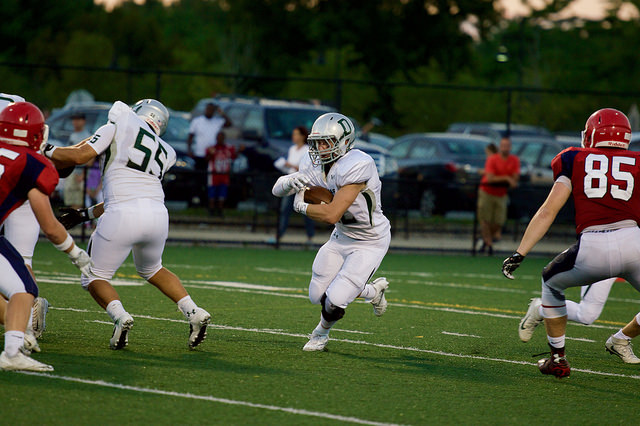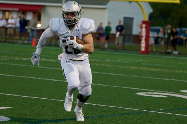 Having lost nearly all of his Jr. season to a torn ACL in his left knee the record books may never reflect “DD” as Duxbury’s best, but his performance last night certainly makes his namesake part of the conversation. The senior running back had a great game with five TDs for the Dragons (4-0, 2-0 Patriot League Keenan Division).