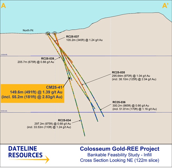 SAN BERNARDINO, CA, February 12, 2026 (Newswire.com) - Dateline Resources Limited (ASX:DTR)(OTCQB:DTREF)(FSE:YE1) (Dateline or the Company) is pleased to report results from diamond core hole CM25-41 at its 100%-owned Colosseum Gold and Rare Earth Element (REE) Project in San Bernardino County, California. The hole was drilled in the northeast extension of the North Pipe breccia system, an area beyond the currently defined mineral resource boundary that has been progressively delineated through the Company's 2025 drilling program.