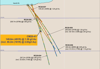 CM25-41 ended in ore-grade mineralization, indicating drilling has not yet defined the limits of this system. With the larger diamond drill rigs now mobilizing, the Company intends to fully test the extent of this zone.