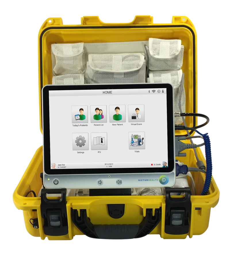 Dictum Health's first product release is the VER-MEDIC, a mobile, lightweight, ruggedized telehealth case that is always ready to use. VER provides immediate access to clinical care by connecting remote clinicians to specialists using video conferencing and simultaneous viewing of diagnostic data and medical images for immediate assessment and clinical decisions.