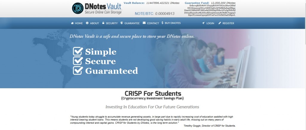 Central to DNotes long term strategic plan is the creation of highly scalable building blocks, as the foundation of its own ecosystem. Those strategic building blocks include CryptoMoms; a currency neutral site dedicated to encourage female participation, DNotesVault; free and secure storage for DNotes’ stakeholders with 100% deposit guarantee, and CRISPs; a family of Cryptocurrency Investment Savings Plans. CRISP for Students will become an integral part of DNotes ecosystem, with plans to include a conduit of scholar funds and an online global student marketplace. This is a global initiative to build the next generation of DNotes leaders and stakeholders, leading to mass consumer and mass merchant adoption of DNotes as a medium of exchange.