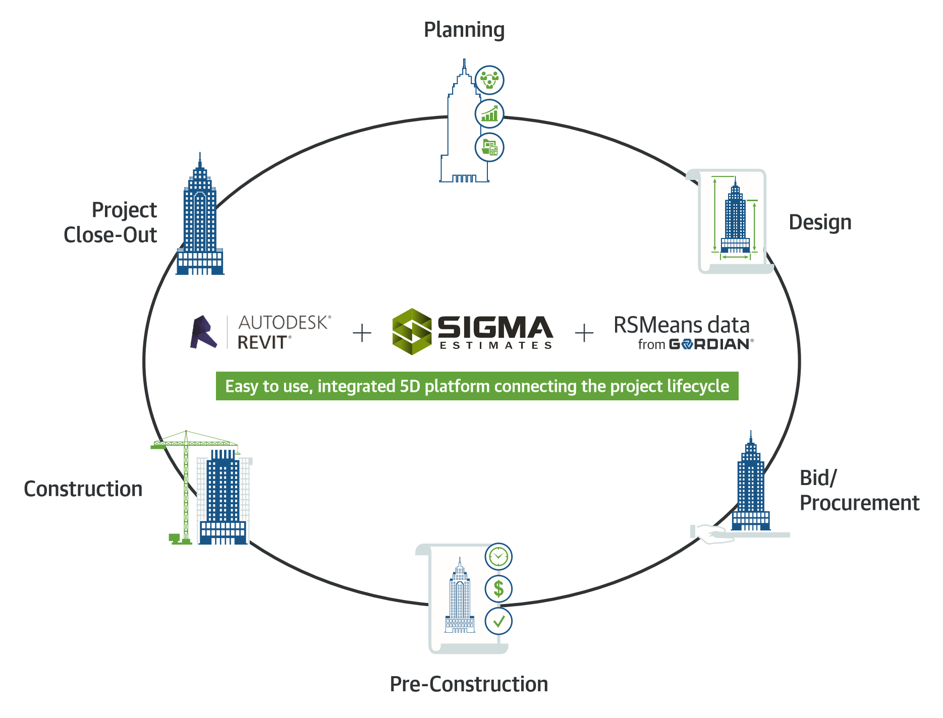 By aligning 3D models with 4D scheduling and 5D costs, construction professionals benefit from improved efficiency, increased profitability, reduced risks and less need for changes and rework. The 5D BIM platform provided by Sigma Estimates in combination with RSMeans data from Gordian and Autodesk Revit will enable the construction industry to stay competitive, ensure growth and embrace the next level of 5D VDC workflows.