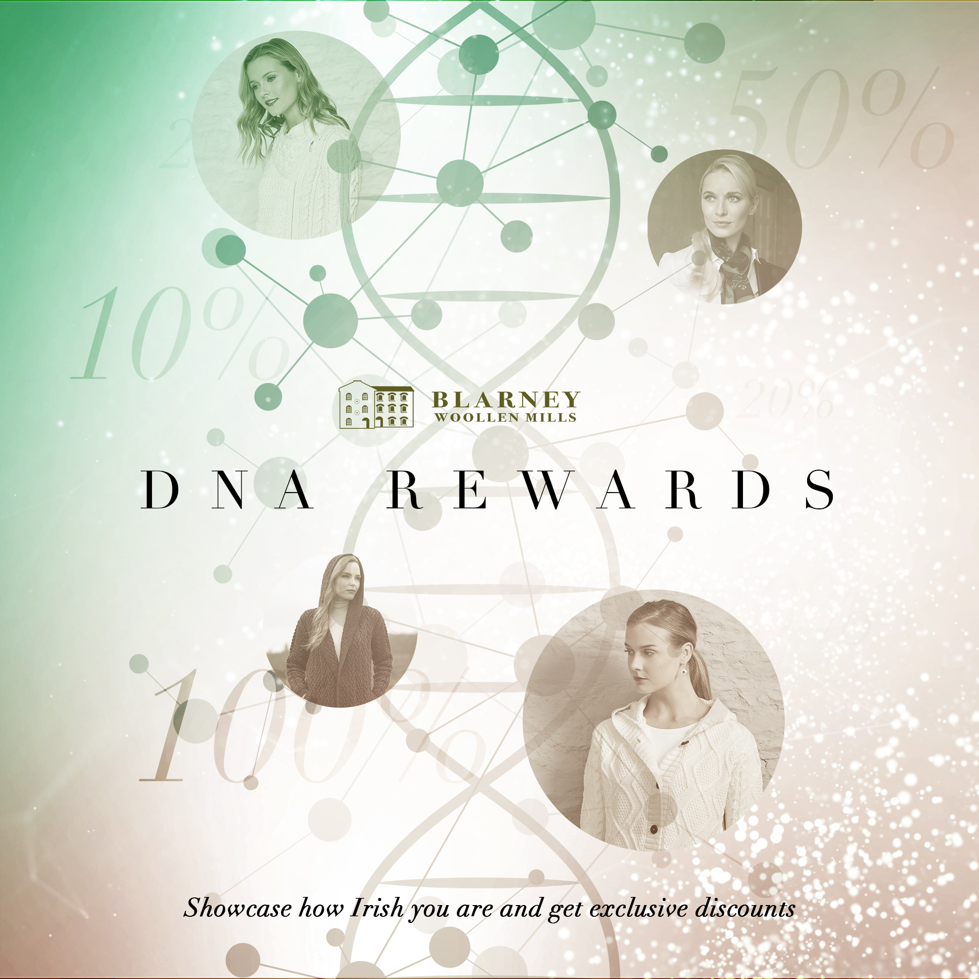 To enter, share a screenshot of your percentual DNA or result of the digital quiz on the Blarney Woollen Mills Facebook page. Four hundred winners will receive promo codes, which can be used on Blarney.com.