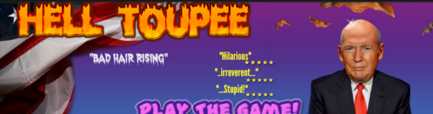 Like Hell Toupee App. Hell Toupee is a parody of Donald Trump's hair, and it is billed as "irreverent Hilarious and Stupid". In Hell Toupee you pilot Donald Trumps hair, as it flaps and flies into the blue. You tilt the phone to steer. The game is more challenging than it sounds, and you navigate well or find yourself "fired."