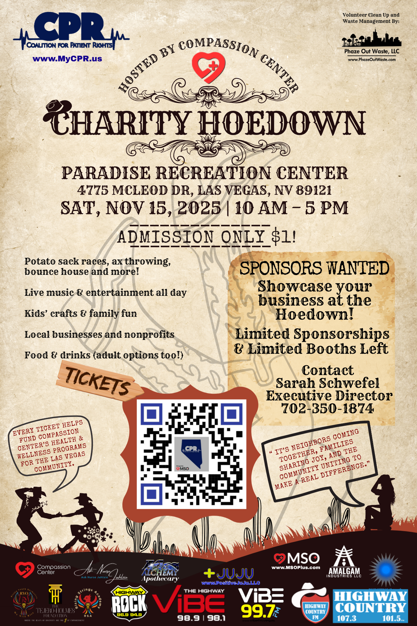 LAS VEGAS, October 30, 2025 (Newswire.com) - The community is invited to come together for good food, great music, and even greater causes at the Compassion Center's Coalition for Patient Rights Inaugural Charity Hoedown , happening Saturday, November 15, 2025, from 10:00 AM to 6:00 PM at 4775 McLeod Dr, Las Vegas, NV 89121 (Paradise Recreation Center).