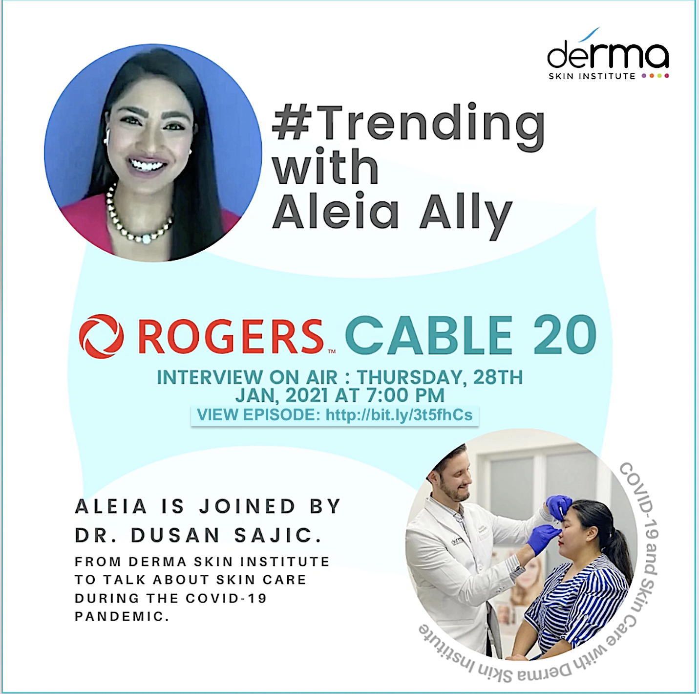 GUELPH, Ontario, January 28, 2021 (Newswire.com) - Dermatologist Dr. Dusan Sajic is a guest on #Trending with Aleia Ally on Rogers TV, Channel 20, airing January 28 at 7:00 p.m. and running on the show for two weeks. In this episode, Dr. Sajic, medical and cosmetic dermatologist at deRMA Skin Institute in Guelph, shares skin care tips for the COVID- 19 era and beyond.