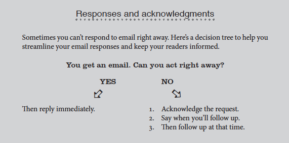 A chapter on email planning helps you put yourself in your readers’ shoes and appreciate how they’ll react to your message. This kind of clear thinking saves time for everyone, keeps you easy to work with, and boosts your credibility.