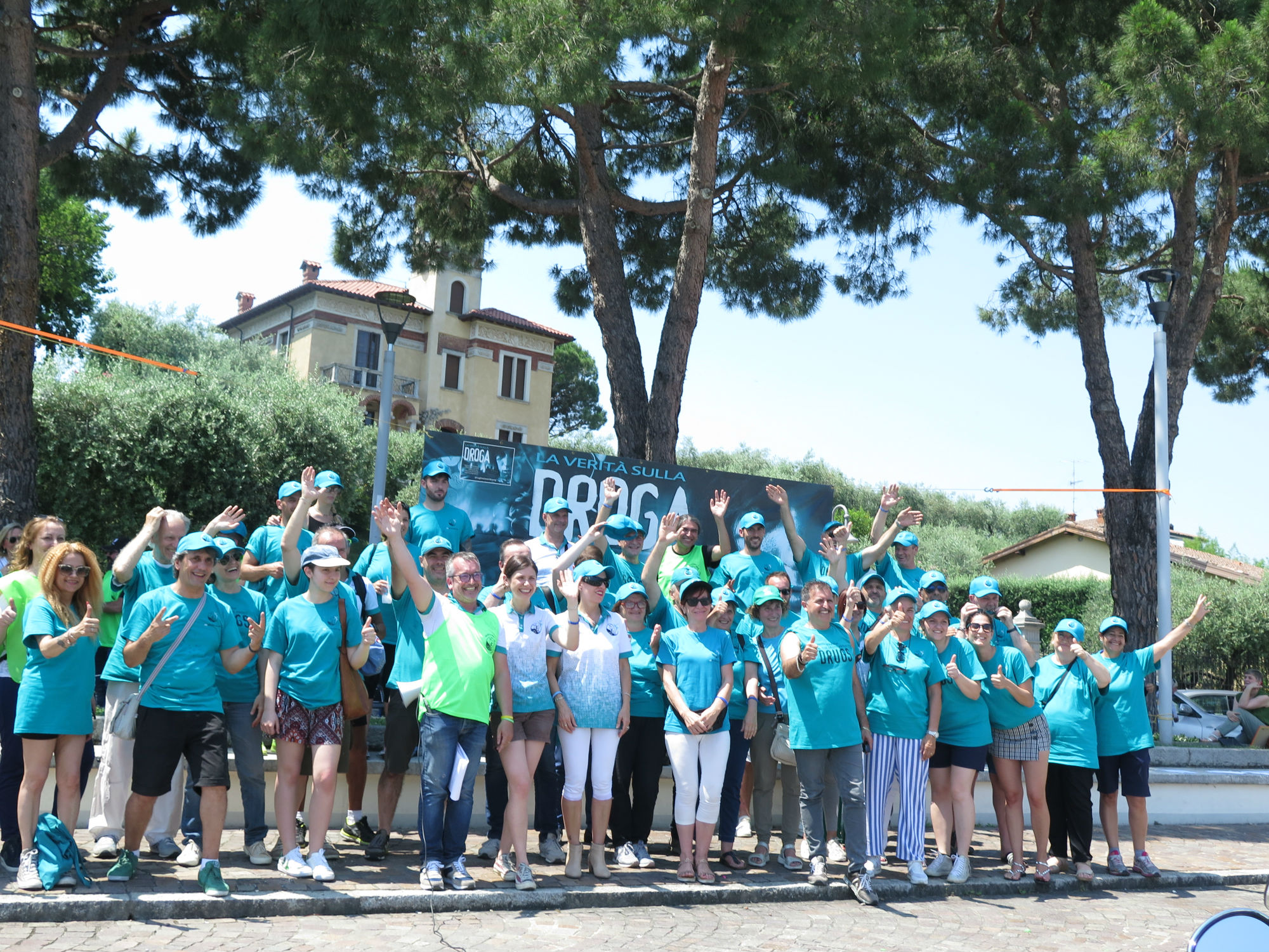 The bikers gathered in the central square of Sarnico, where they signed up for the tour around the lake. They received a sticker to put on their bikes and a mesh tank top with the logo of Foundation for a Drug-Free World. Each bike bore the tour logo with its message: Say NO to Drugs.