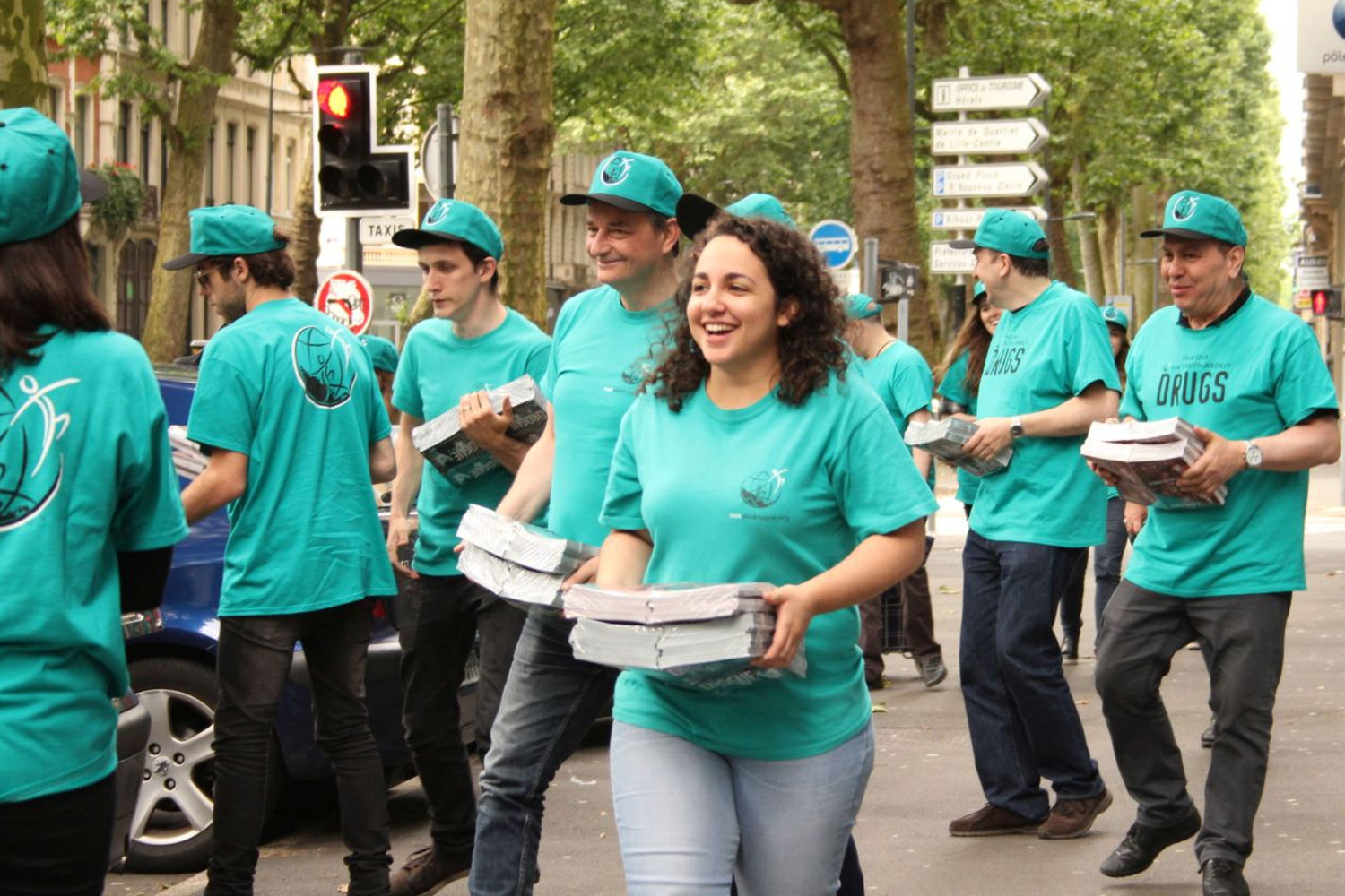 From June 10 to July 10, volunteers carried out events in the 14 cities where the matches were held. Continuing through Bastille Day, July 14, they handed out a total of 300,000 copies of the acclaimed drug education booklets of The Truth About Drugs booklets.