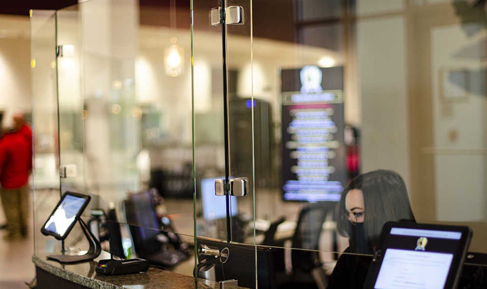 In the last few weeks, Dulles Glass, Inc. engineered a glass shield that is made for almost any business, but specifically for desktops, countertops, cash registers, and other high-traffic areas. Glass Guard is much more than just a glass barrier. It will drastically minimize the exposure of germs and manage social distancing for any business. It is self-standing and fabricated from a safety-tempered glass with polished edges that is non-porous and easy to install. Chrome-powered quoted brass clamps attach the glass together and securely fasten the glass to a counter space for maximum safety. The six-inch opening at the bottom of the guard creates a perfect way to exchange paperwork, products, credit cards, etc.