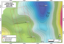 DW26-003 tested a significant ground gravity low complemented by a partially overlapping magnetic low and bounded to the east by a magnetic high.