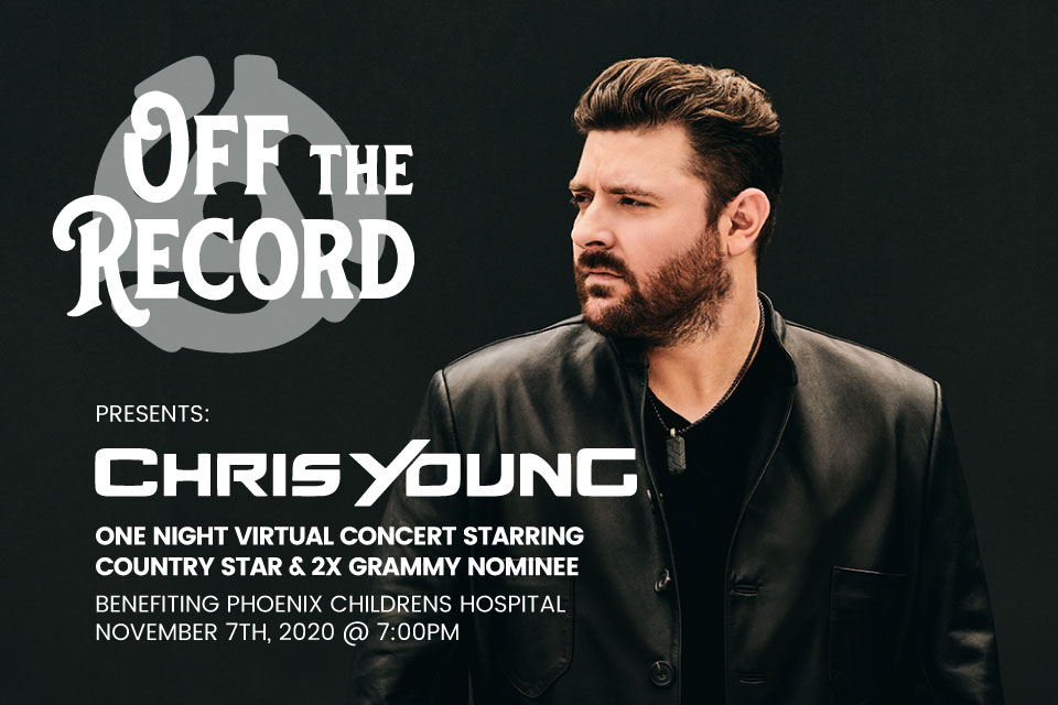 MESA, Ariz., October 28, 2020 (Newswire.com) - Chris Young will headline Off the Record, the annual fundraiser for the Phoenix Children's Hospital Foundation hosted by major sponsor, Earnhardt Auto Centers. The multi-platinum country music entertainer has many hits including "I'm Comin' Over", "Drowning", "Gettin' You Home (The Black Dress Song)", "You", "Raised on Country", and "Losing Sleep."