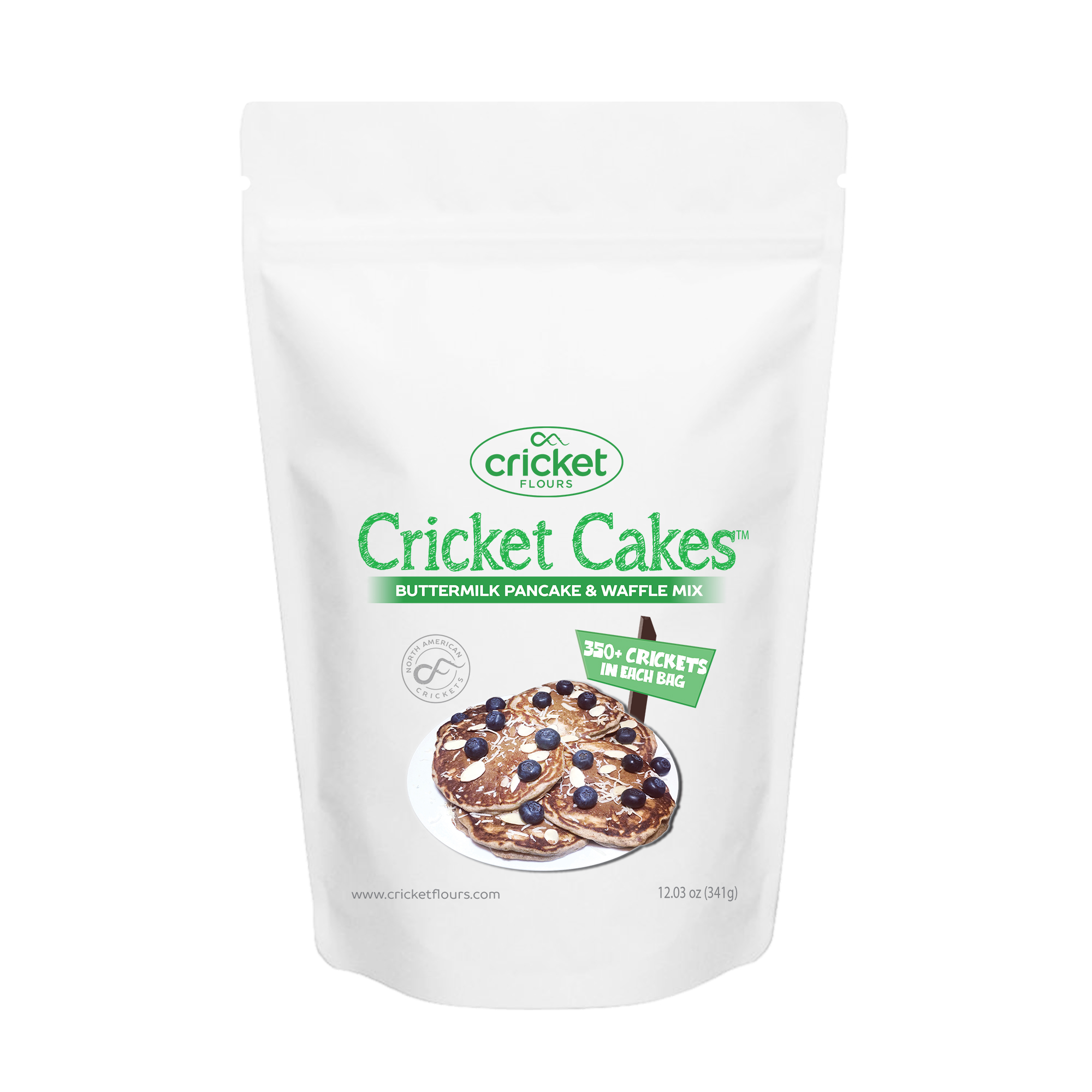 The Cricket Cakes buttermilk pancake and waffle mix contains over 16g of protein per cup, and 60% of the daily value of B12 (based on a 2,000 calorie daily diet). Manufactured by Cricket Flours in Portland, Oregon, Cricket Cakes is launching nationwide this Thursday, Feb. 11, 2021, and is available directly to consumers through the Cricket Flours website at www.CricketFlours.com and through the company's other physical and digital marketplaces.