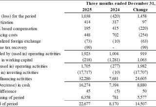 The Company generated positive cash from operations of $1.9 million for Q1 2026, compared to cash generated from operations of $1.0 million in Q1 2025. Cash generated from operating activities before net changes in working capital was $1.7 million for FY2025 compared to cash used of $(0.3) million for Q1 2025. A significant improvement in operating cash flow of $2.0 million.